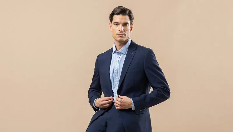Ha apostado por un tejido stretch reciclado en un clásico azul marino, que se adapta a cualquier cita, desde un día de reuniones hasta una cena especial. Para aquellas prendas de estilo más casual se han empleado principalmente lana, algodón, lino y tejidos de origen natural; y el nylon y poliéster para la parte más técnica, donde impera la funcionalidad y comodidad. Para aportar un plus de comodidad se han utilizado tejidos elásticos (comfort stretch) y el corte “slim fit” para los trajes, es decir, ligeramente ceñido, pero sin llegar a marcar una silueta muy entallada.