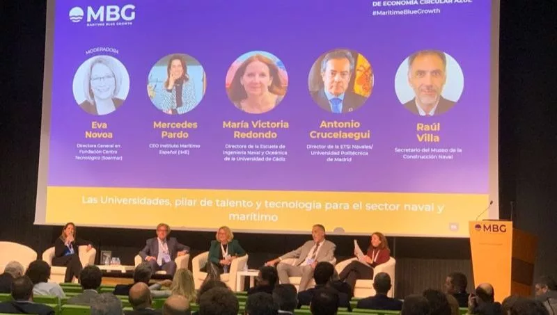 En la mesa redonda participaron Mercedes Pardo, CEO del Instituto Marítimo Español (IME), María Victoria Redondo, directora de la Escuela de Ingeniería Naval y Oceánica de la Universidad de Cádiz (UCA), Antonio Crucelaegui, director de la Escuela Técnica Superior de Ingenieros Navales de la Universidad Politécnica de Madrid (UPM), y Raúl Villa, profesor asociado de la Universidad de La Coruña (UDC).