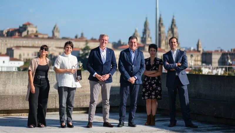El presidente de la Xunta, Alfonso Rueda, acompañado del conselleiro de Cultura, Educación, Formación Profesional y Universidades, Román Rodríguez, recibió hoy el equipo del filme O Corno, ganador de la Concha de Oro en el Festival de San Sebastián y primera producción audiovisual gallega que recibe este galardón.